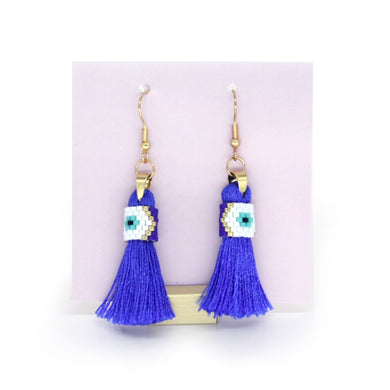 Blue tassel beaded earrings
