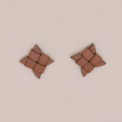 Brown PU leather windmill stud earrings